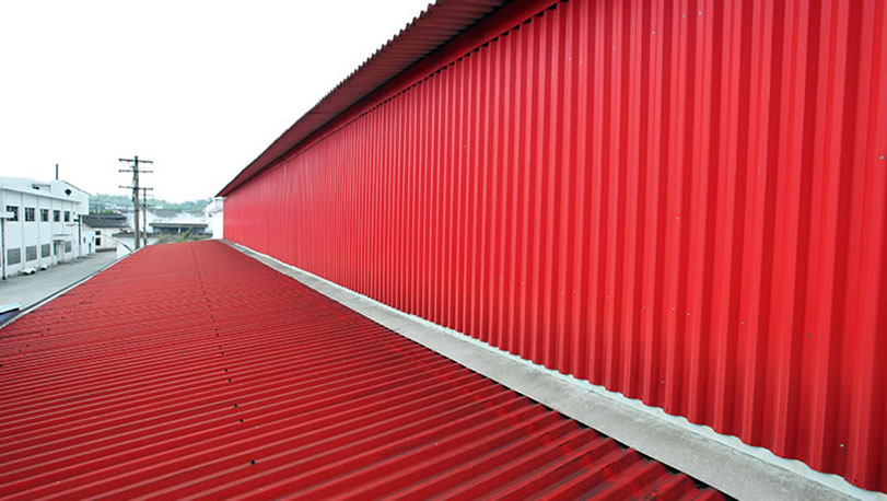 1993年建設(shè)。采用寶鋼緋紅PE聚酯彩涂,熱鍍鋅基板,鍍鋅量為180克/平方米,鋼種為TSt01。使用了十八年后,涂層顏色依然鮮艷,涂層厚度更是與出廠厚度接近,達(dá)到19.8微米,涂膜保存完好。